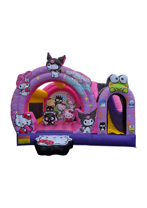 Springkasteel Kuromi zorgt voor een vrolijke en kleurrijke speelbeleving die perfect aansluit bij jongere kinderen. Het charmante ontwerp met herkenbare personages, zachte tinten en speelse illustraties creëert een uitnodigende en vriendelijke sfeer.
